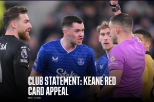 体育资讯1月9日讯 埃弗顿足球俱乐部遗憾地宣布,关于迈克尔·基恩在周三对阵狼队的英超比赛中被罚下场的上诉已被英足总小组驳回。