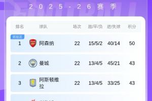下一篇: 英超积分榜:前四连续两轮均未赢球,第2曼城第3维拉距阿森纳7分