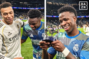 体育资讯1月21日讯 据转播方DAZN报道称,在皇马6-1击败摩纳哥后,姆巴佩是最先祝贺维尼修斯获得全场MVP的队友。