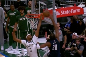GIF-萨尔上篮被特纳直接帽翻在地