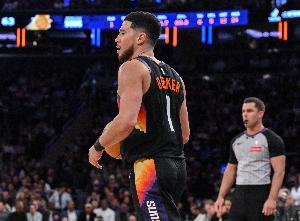 第三节比赛,太阳球星布克状态火热,单节10中7,三分球3中2,砍下16分2篮板1助攻的数据,不过在节末踩到奥孔武崴脚回到更衣室。