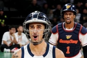体育资讯1月25日讯 广东外援萨姆纳社媒更新,晒出了一张自己和奎因身穿护具打球的P图。