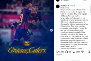 尽管今天我选择踏上另一条道路,但无论身在何处,我都会像一名普通球迷一样继续支持你们,为你们加油。巴萨和拉玛西亚不仅是我成长道路上的重要部分,更将永存在我的生命之中。感谢你们所做的一切。