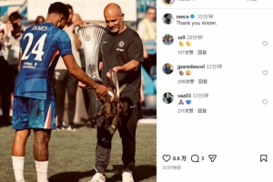 詹姆斯晒出自己和马雷斯卡携带欧协联冠军奖杯和世俱杯冠军奖杯的照片,并配文:“谢谢您,先生。”