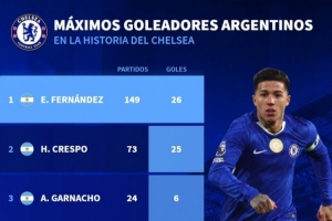 据德国转会市场统计,恩佐为切尔西出战149场比赛,打进26球,超越克雷斯波,成为队史进球最多阿根廷球员。