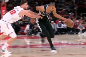 GIF-文班in and out突破 申京连拉带拽 阿门最后也上手犯规