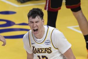 第一节,湖人球员拉拉维亚面对旧主表现出色,打了9分钟5投4中,三分2中1、罚球2中2拿到11分1篮板1助攻,正负值+3。