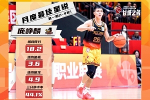 场均18.2分3.6板4.9助!庞峥麟荣膺CBA联赛第1期月度最佳星锐球员