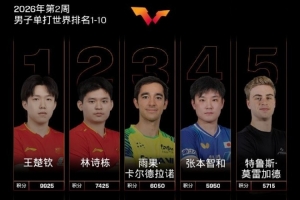 体育资讯1月5日讯 国际乒联官方公布2026年第二周世界排名,王楚钦和孙颖莎继续领跑男女单打。